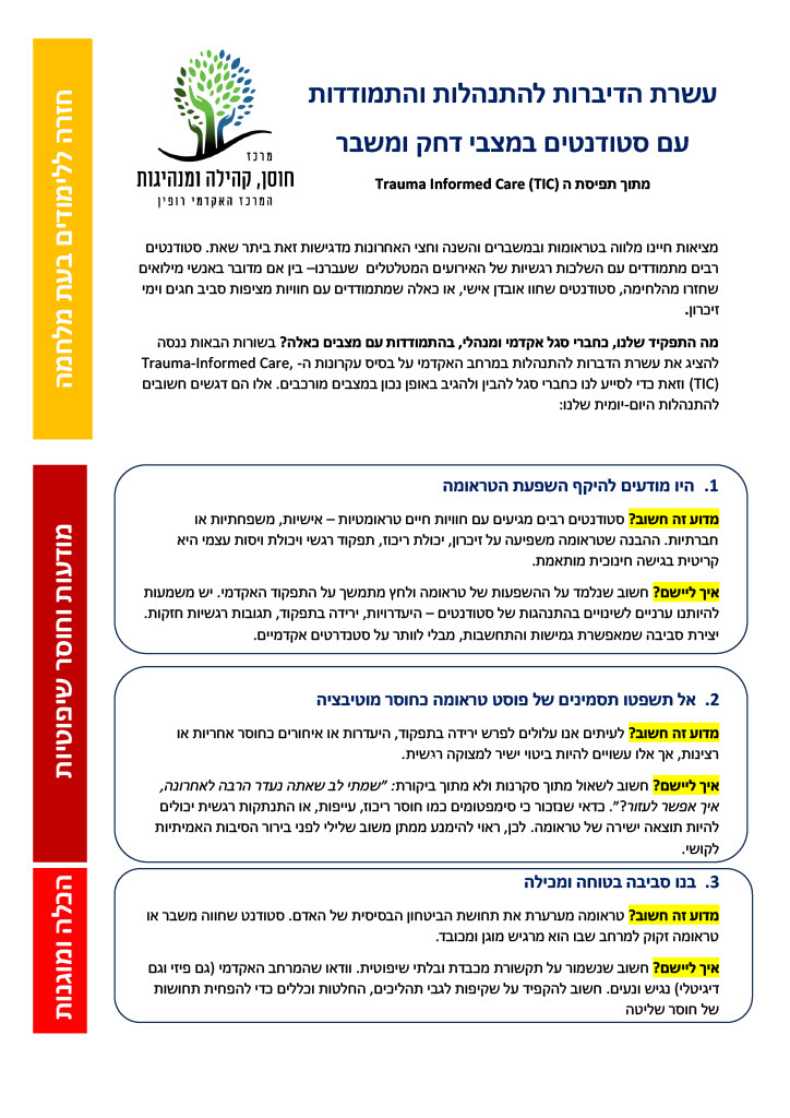 מציאות מודעת טראומה- מסמך הנחיות לסגל
